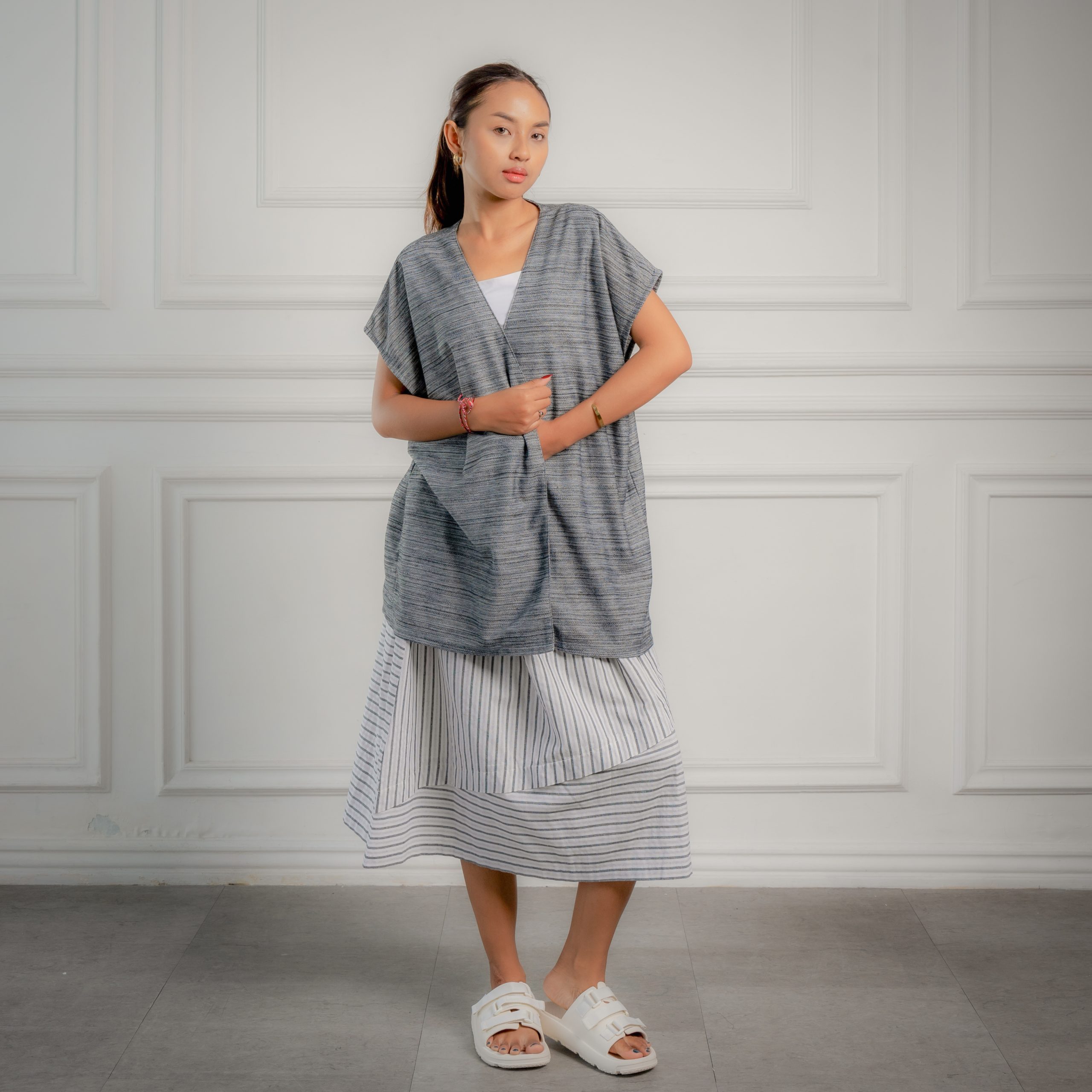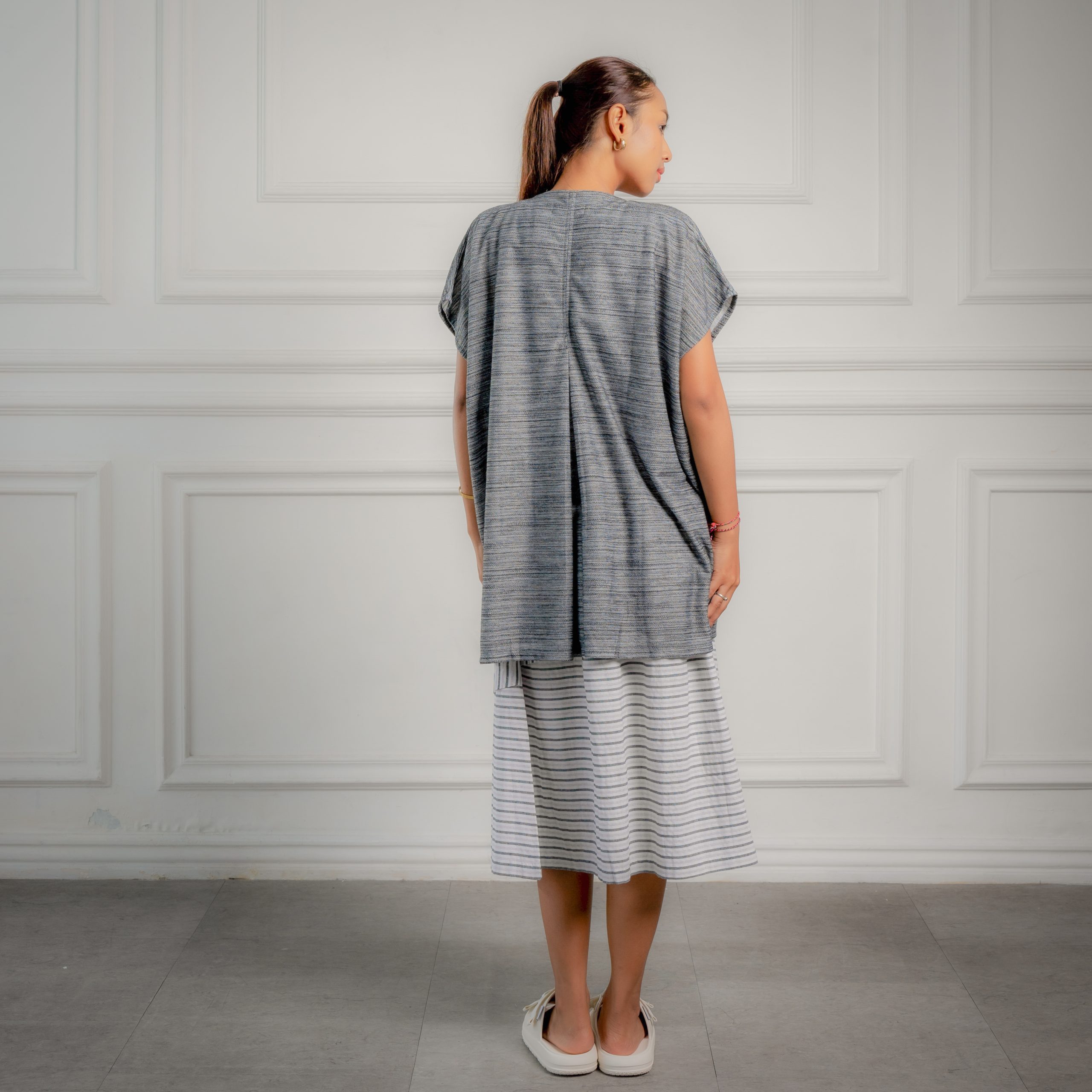 Add a simple belt and style it as wrapped-around top for getting more classy look